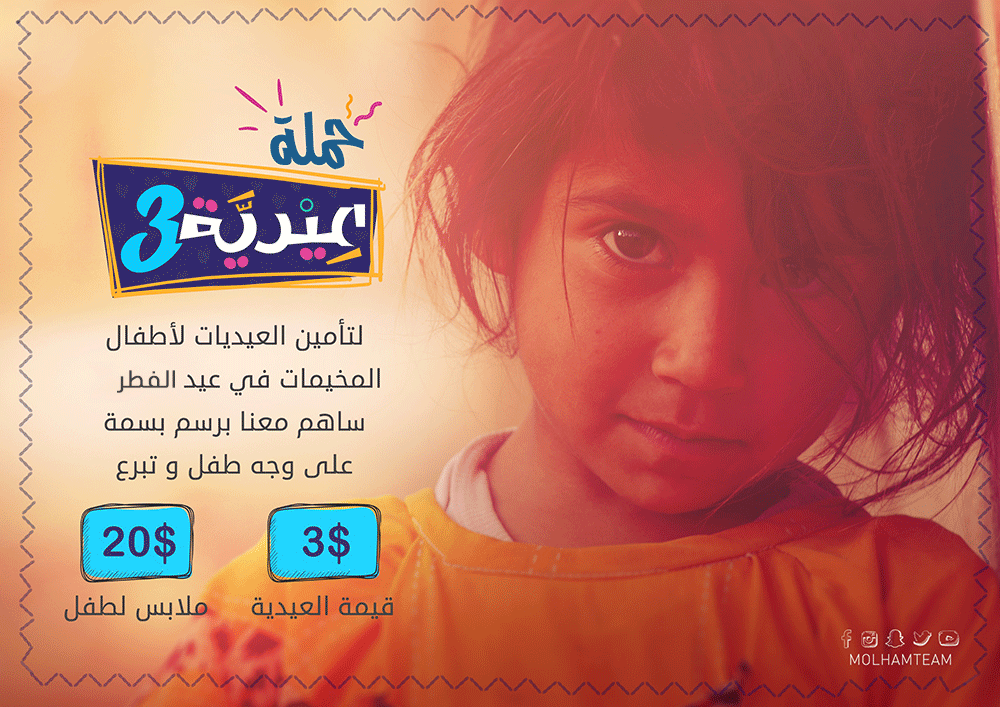 سنسعى من خلال هذه الحملة لتأمين ملابس العيد و العيديات للأطفال الأكثر حاجة في الشمال السوري و مخيمات اللجوء