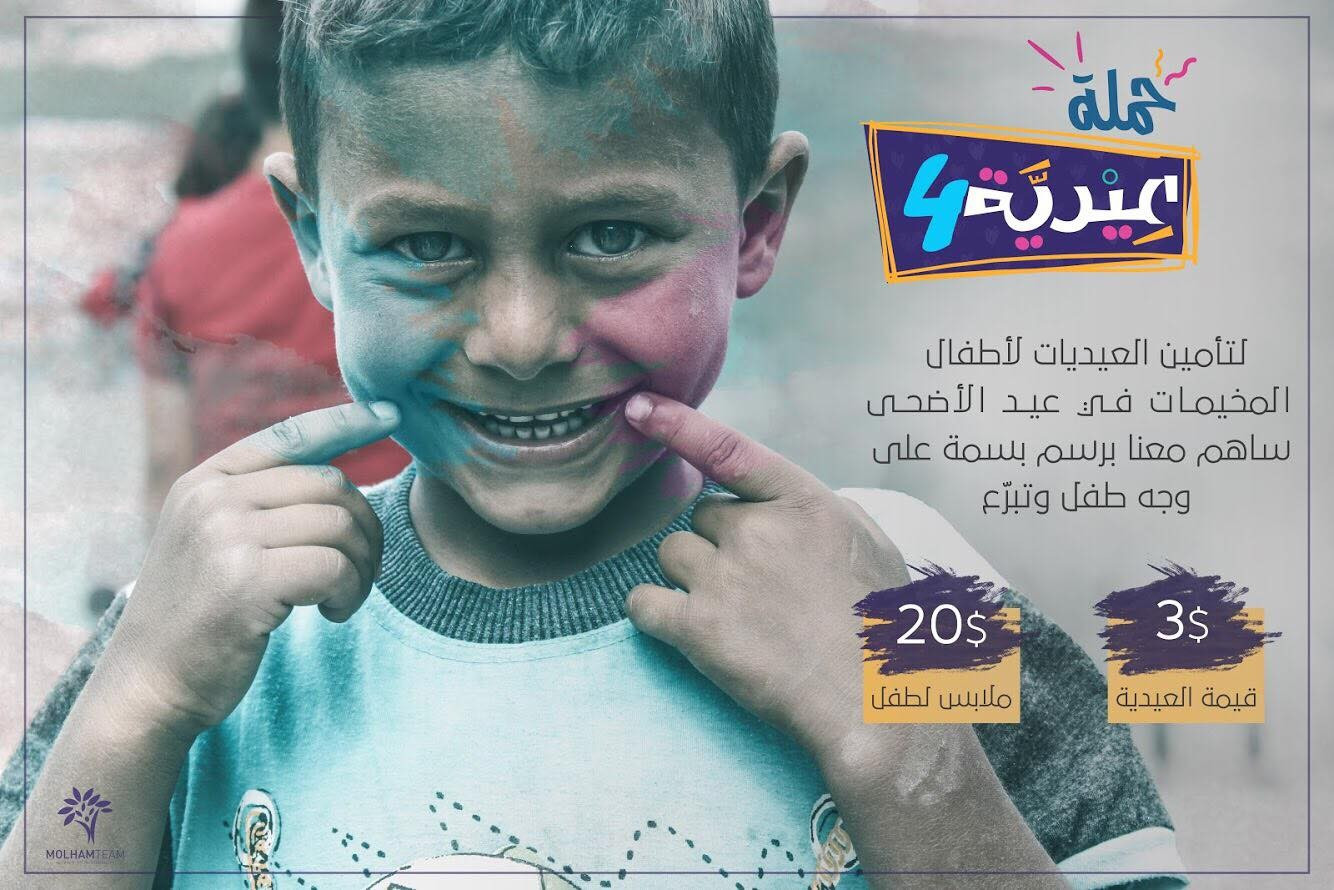 سنسعى من خلال هذه الحملة لتأمين ملابس العيد و العيديات للأطفال الأكثر حاجة في الشمال السوري و مخيمات اللجوء