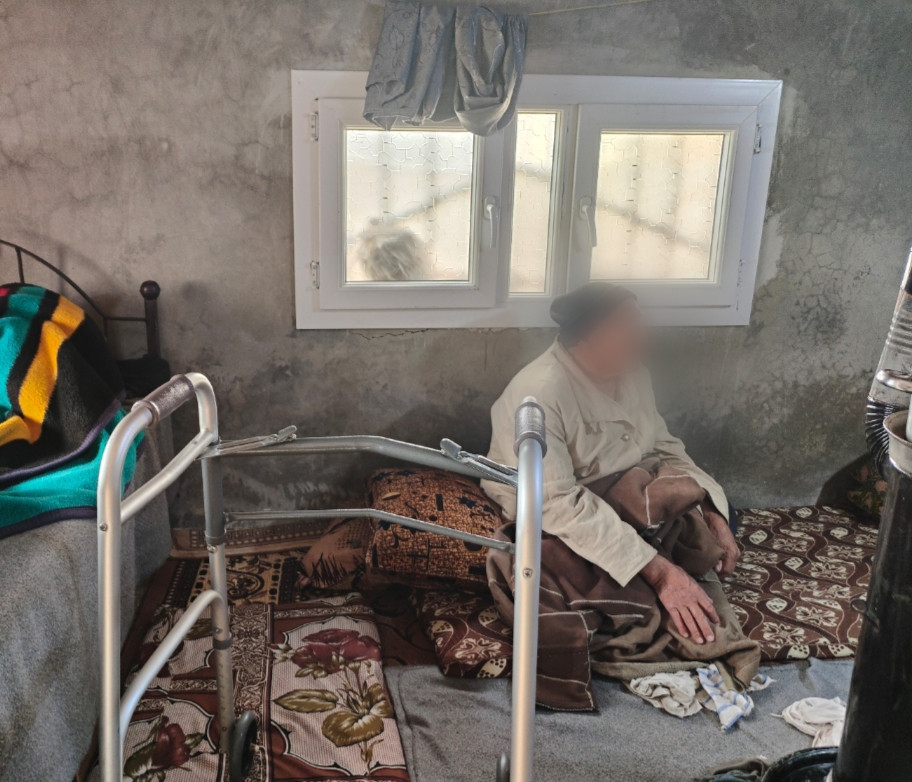 يعاني الجد من هشاشة عظام حادة جعلته طريح الفراش، فيما تتحرك زوجته بصعوبة مستندة إلى جهاز المشي. وبين المرض والعجز، يمضي يومهما في صراع صامت مع الألم والحاجة.