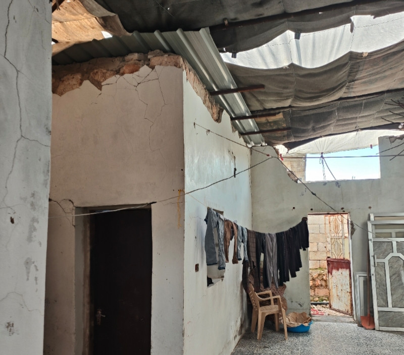 بعد رحلة نزوح قاسية، عادت الخالة حميدة مع ابنتها إلى قريتهما لتجدا منزلهما شبه مدمّر ويفتقر لأبسط مقومات الحياة، حيث تعيشان فيه وحدهما دون معيل أو مصدر دخل ثابت يؤمّن احتياجاتهما الأساسية.