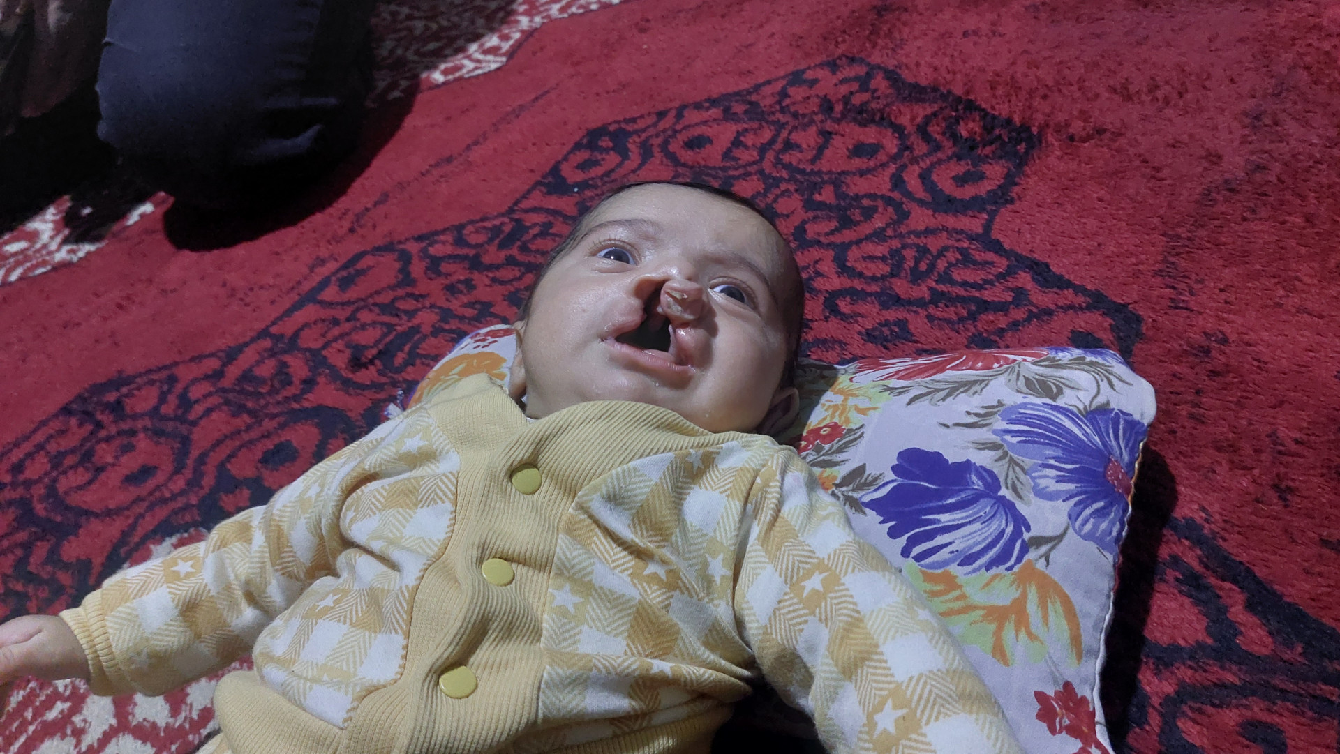 يعيش محمد مع تشوه خلقي في الفم وثقب في الحلق وكتلة داخل الفم، ما يجعل أبسط شيء في حياته معركة يومية. فعند كل محاولة لإطعامه، يبقى والداه في قلقٍ شديد، يخافان أن يتسرب الحليب عبر الثقب ويؤذي جسده.