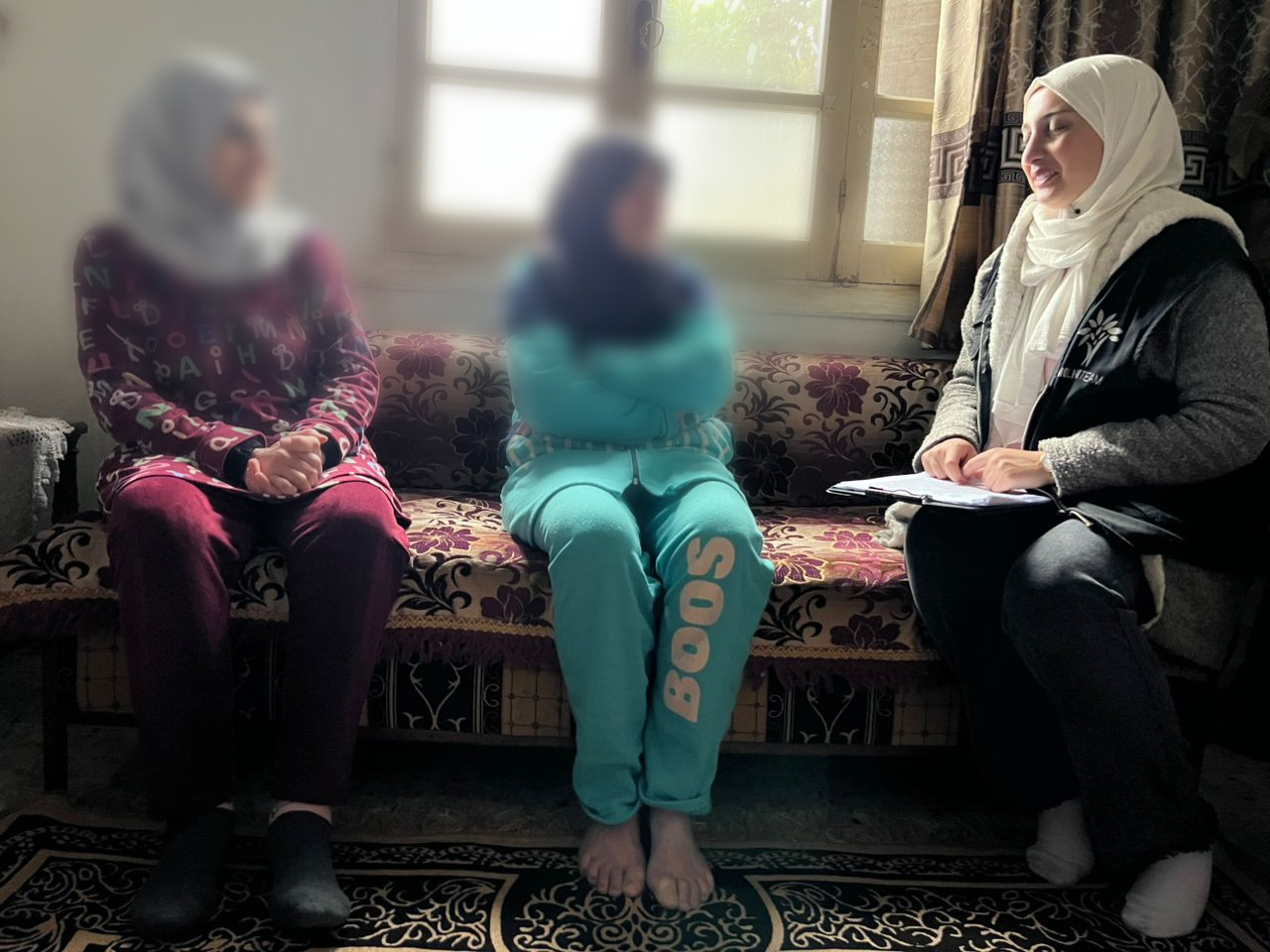 تعيش السيدة خلود مع ابنها و اخواتها بمنزلٍ ايجار بعدما اعتقل زوجها منذ أعوام و استشهد في المعتقل.