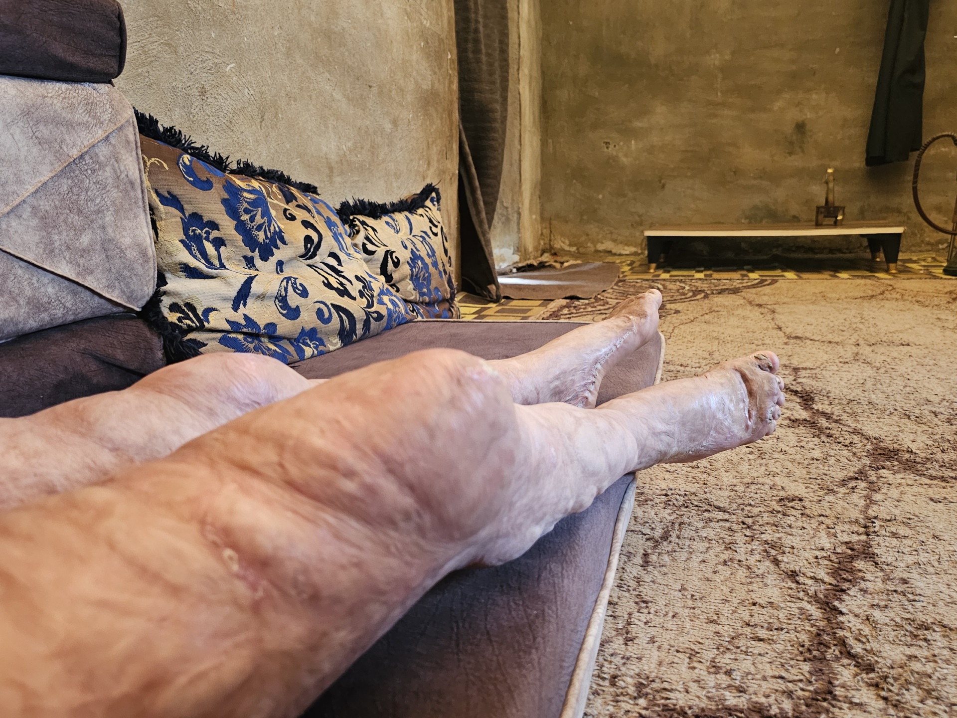 يعيش العم مصطفى اليوم نازحًا في مخيم مع أسرته، ويعمل على بسطة خضرة بدخل بسيط بالكاد يؤمّن احتياجاتهم. ومع حاجة عمر لعلاج مستمر وأدوية لترميم جلده، تقف العائلة عاجزة عن تحمّل التكاليف، وهي بحاجة ماسة إلى دعم عاجل.