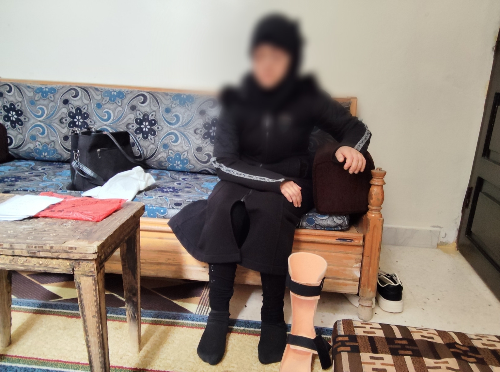 تعيش السيدة خديجة في منزل متواضع مكوّن من غرفتين مع عائلة كبيرة تعتمد على ابنها كمعيل وحيد بدخل محدود من عمله في الحدادة.