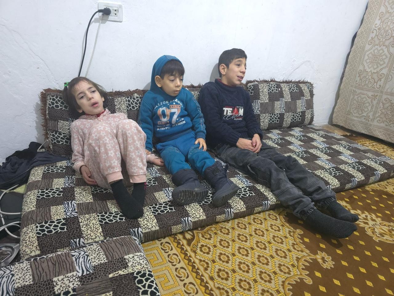 Three children—Mudar, Mohammad, and Ghazal—are living with muscle atrophy, brain injuries, and motor developmental delay. They belong to a small family whose sole provider struggles every day to meet even their most basic needs—diapers, medication, and food—amid extremely harsh economic and living conditions.