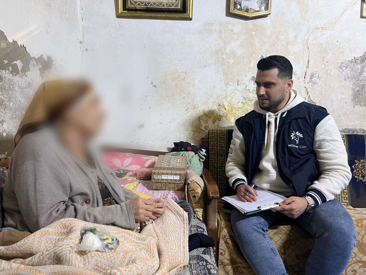 Intissar has become the head of the household after the death of her brother and father. She now cares for her brother’s children and manages their affairs, while also living with her mother, her own child, and her niece’s son. The house has become too cramped to accommodate everyone, and in its current state, it is cracked, unfit for living, and lacking basic necessities. Their living conditions worsen daily, sometimes struggling to secure daily food, other times to provide care. They have no source of income except for some in-kind assistance from neighbors, which barely covers their needs. Her mother also requires medical treatment, which she cannot afford, leaving Intissar powerless against the harsh reality imposed on her. Today, we can help lighten her burden and support her as much as possible to meet the needs of this family.