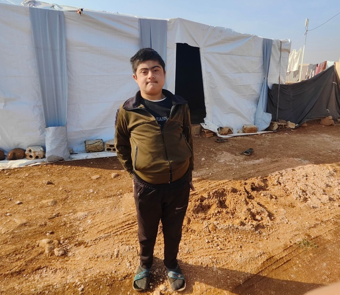 Fawaz lives with his family and his child who was born with a disability, in addition to the lasting scars of war that still affect the child.