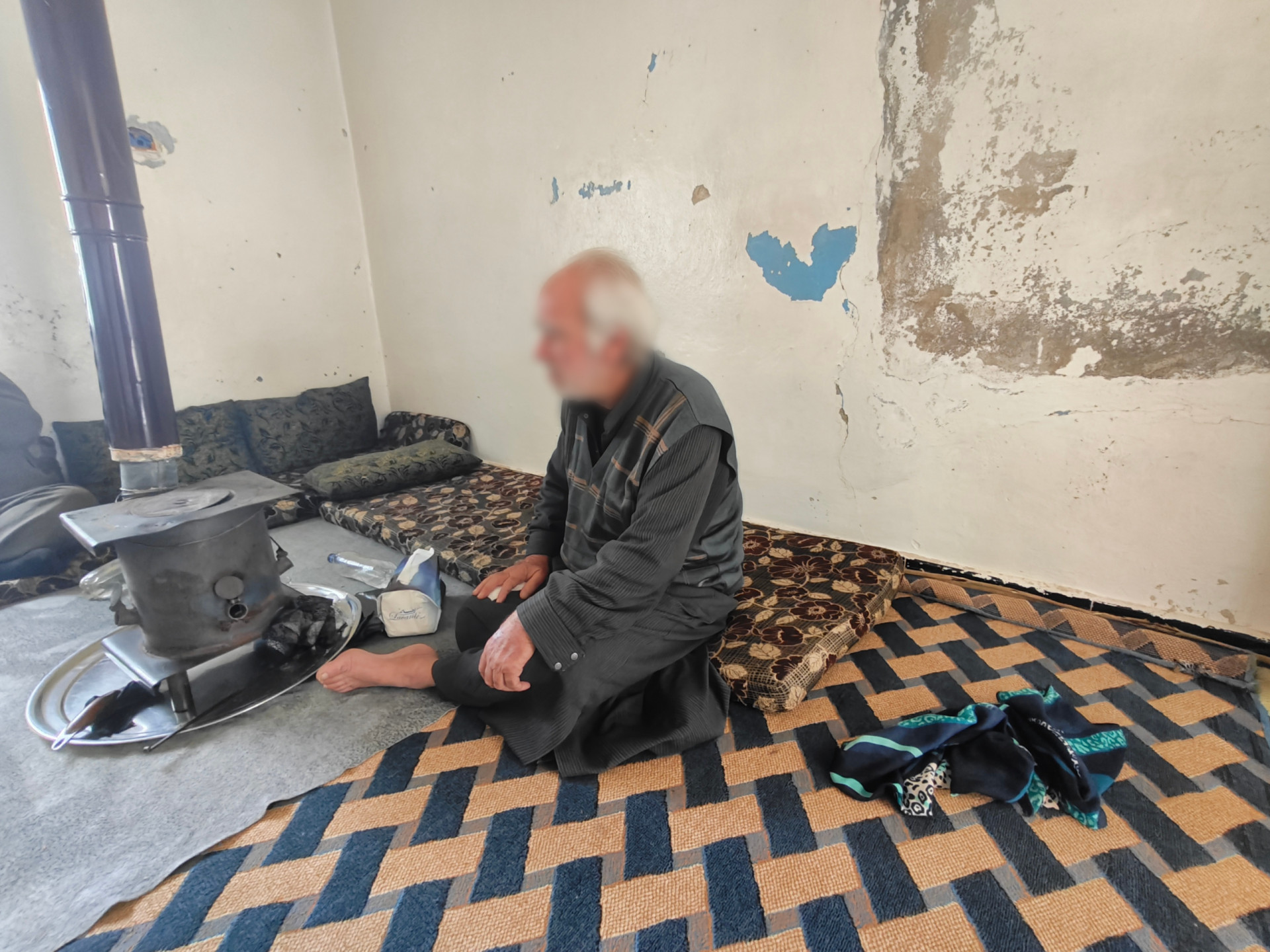 After years of displacement, the couple returned to find their home destroyed. They were forced to repair a small room just to have shelter, and now live with almost no source of income, relying on limited aid that is not enough to cover treatment or basic needs.