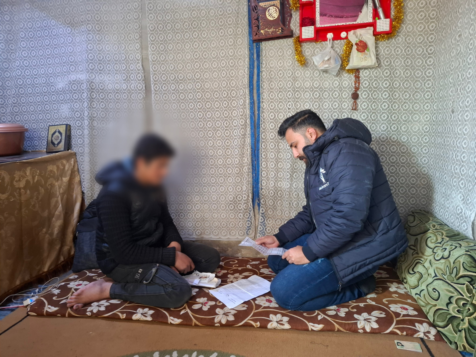 Mohammad lives with his family in a tent in Shmarakh camp under harsh living conditions. His mother is the sole provider, working in agriculture with a very modest income that barely covers even a small portion of their basic needs as she tries to care for her children. Mohammad was born with spina bifida, a condition that has accompanied him since birth and led to complications affecting his ability to walk. Today, he suffers from significant difficulty in movement, constant pain, and a developing curvature of the spine. His condition requires immediate follow-up and treatment, but the difficult circumstances the family is facing prevent them from affording the cost of medical examinations.