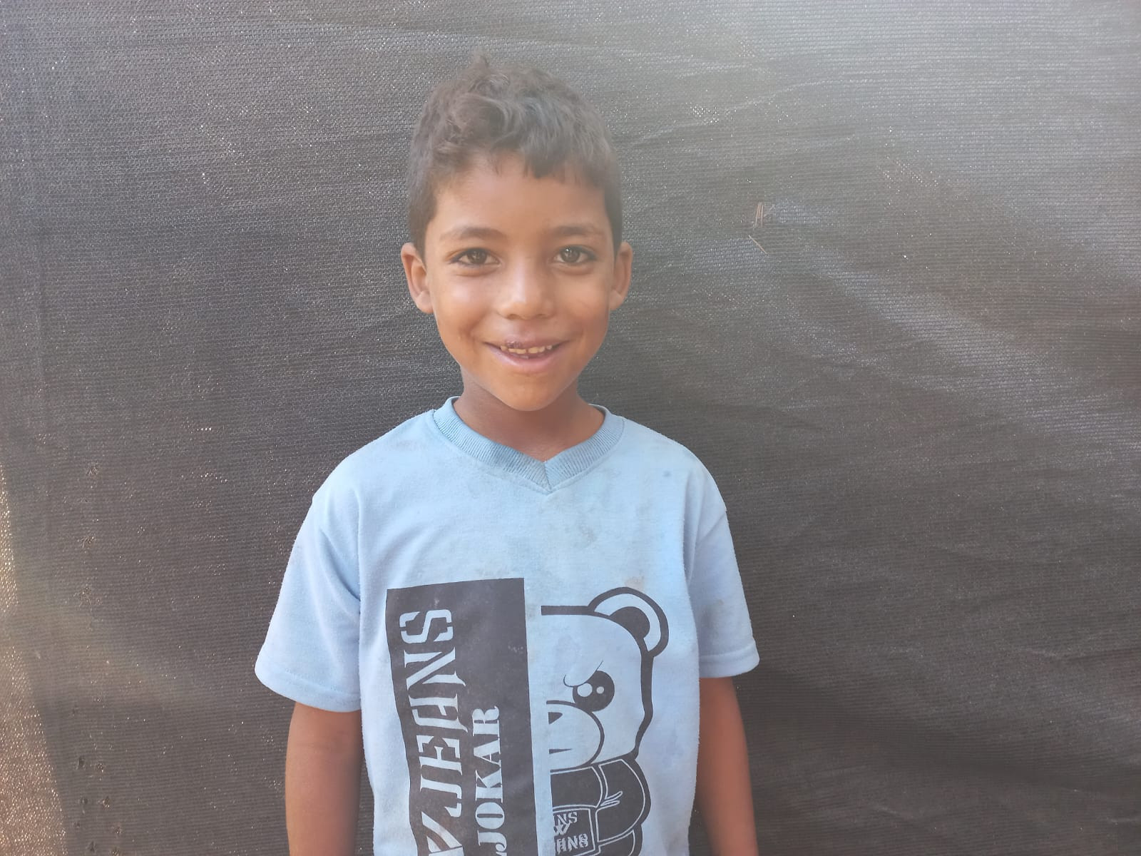Khalil, a 7-year-old boy from Gaza born in 2017, lives in a displacement tent with his mother and siblings. After losing his father during their displacement from Rafah, the family has relied on his 14-year-old brother, who works daily to support them.