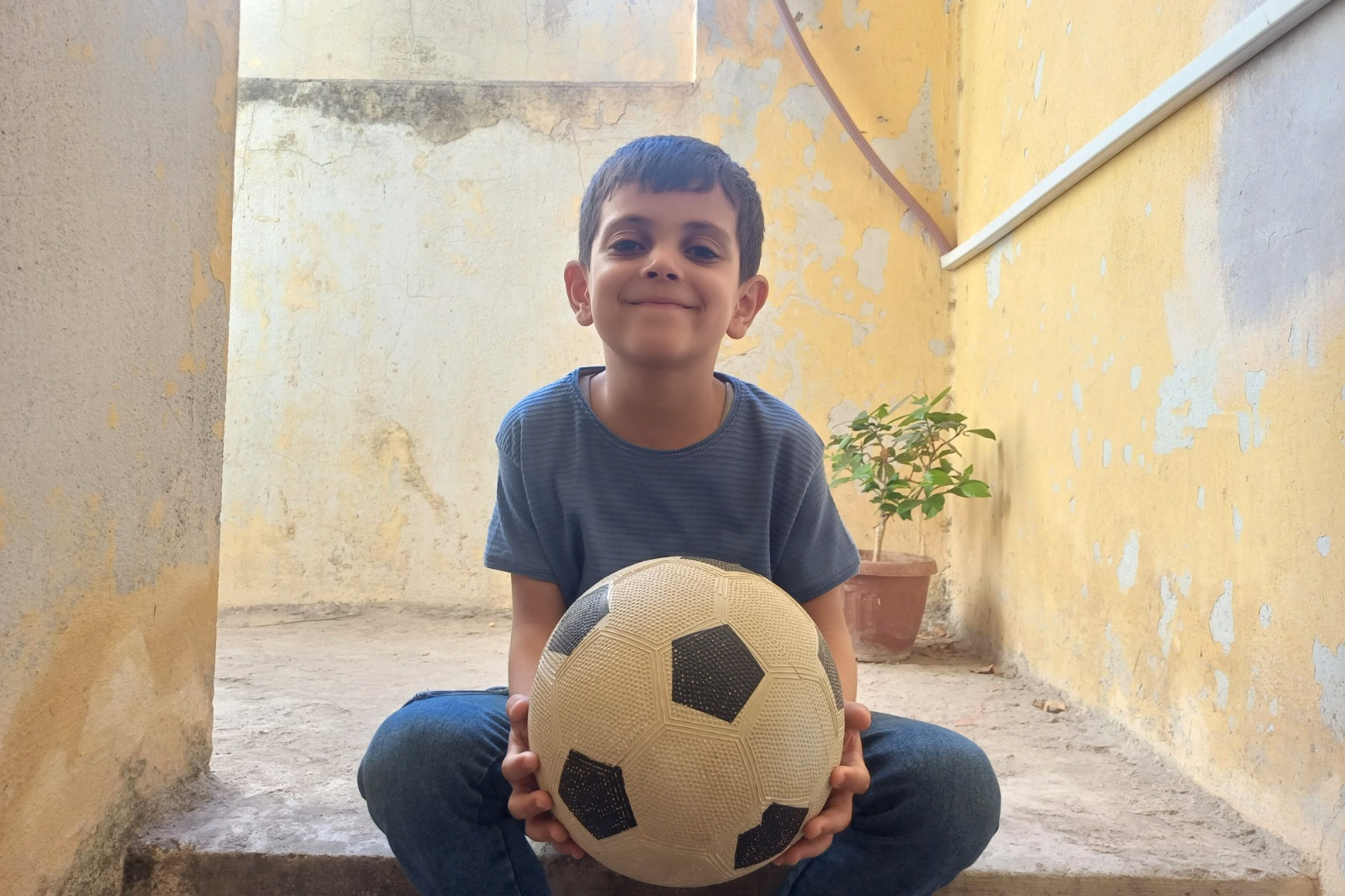 Yet this little boy has found his path: he started school, stuck to his studies, and kept up with his hobbies like playing football. He has a lively, social personality, full of energy and connection to those around him. And he has a clear dream — he wants to join the public security forces one day, to help protect others and serve his country.