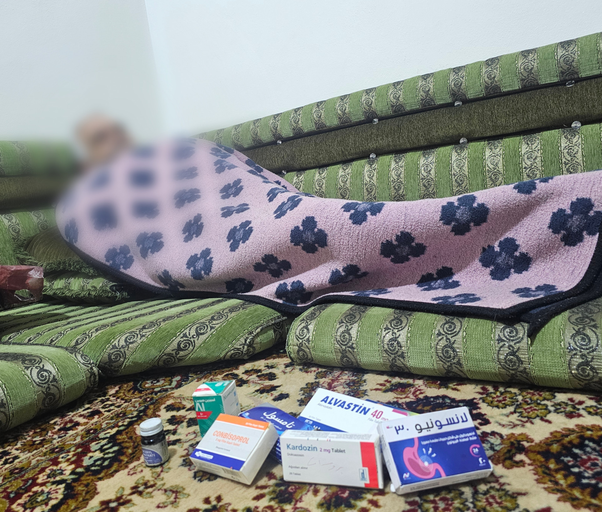 Uncle Mohammed is facing a severe financial crisis due to his low income and advanced age. He suffers from heart disease, high blood pressure, and diabetes, and needs regular medication, but he is no longer able to afford it. All of his sons have families of their own and can barely cover their own living expenses, so they are unable to support their father. He is forced to borrow his medication from pharmacies, hoping to repay the debt if he can, but his difficult situation does not allow him to do so.