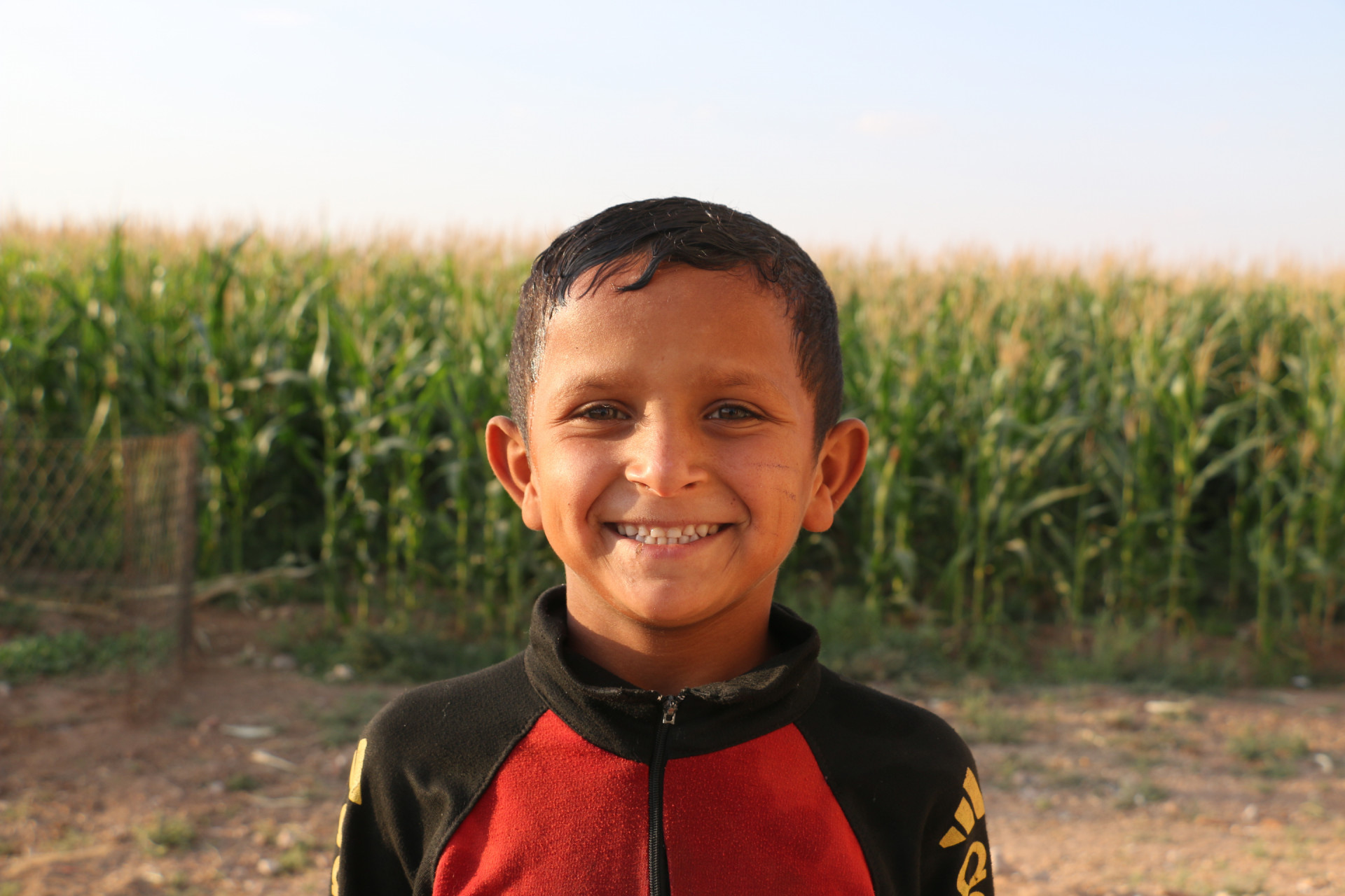 أيمن طفل هادئ وخجول ومحبّ لكرة القدم، ورغم ظروفه، يتابع تعليمه بشكل جيد.